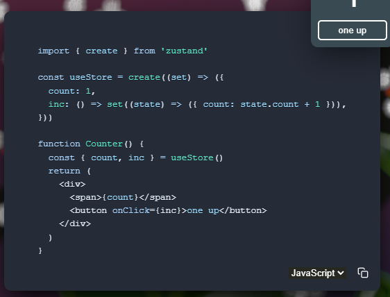 자 zustand의 공식홈페이지에 나온 사용법이야 간단하지?